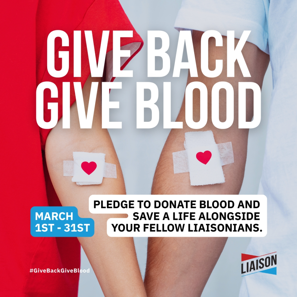Join Liaison’s virtual blood drive and give back by giving blood. Right now, there’s a critical blood shortage, and patients are depending on donors more than ever. Blood saves lives every single day, and it can only happen with the support of people like you. Help us reach our 100-person goal by pledging to donate, and help make a life-saving difference in your community.