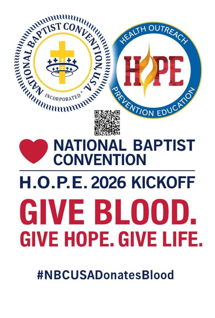 ❤️ National Baptist Convention H.O.P.E. 2026 Kickoff Give Blood. Give Hope. Give Life. #NBCUSADonatesBlood